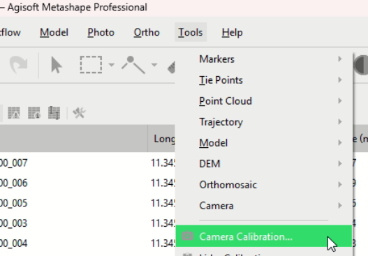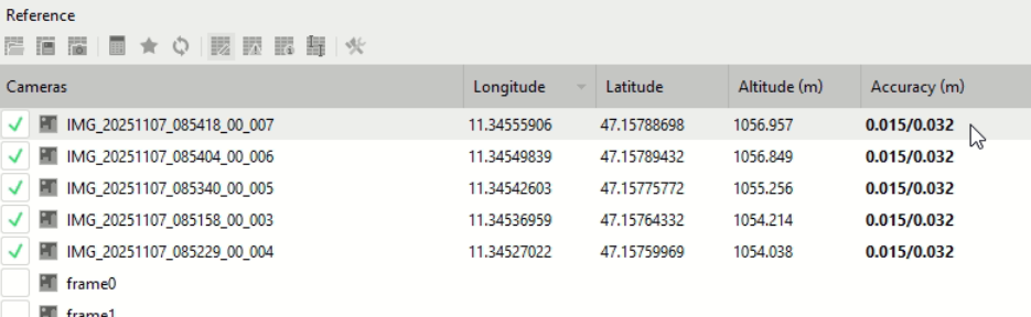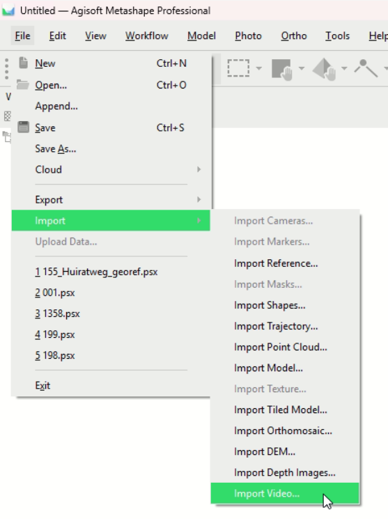 The extracted frames are automatically imported into Metashape project