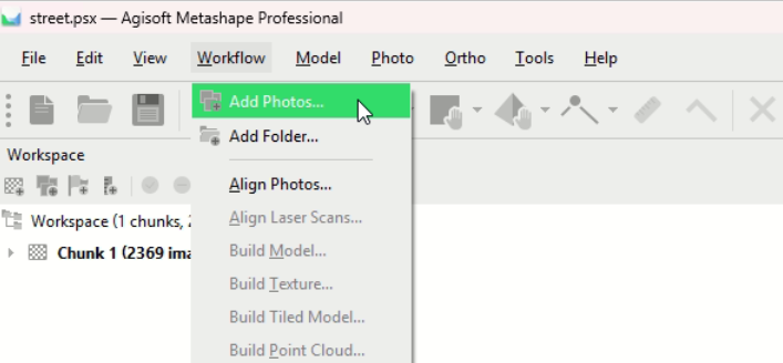 - Open an empty Metashape project and save it as *.psx